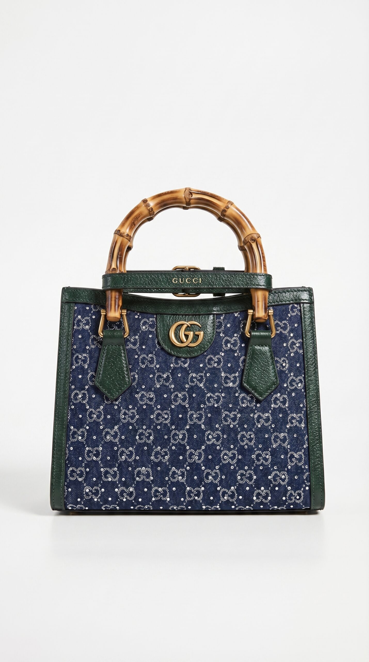 Reimagine el lujo con el bolso Gucci Diana, una pieza que rinde homenaje a un icono de los años 90 a través de una lente contemporánea. Este modelo exclusivo fusiona la textura artesanal de las asas de bambú curvadas a fuego con un audaz cuerpo confeccionado en lona denim con el monograma GG, creando un contraste visual irresistible entre lo rústico y lo urbano.