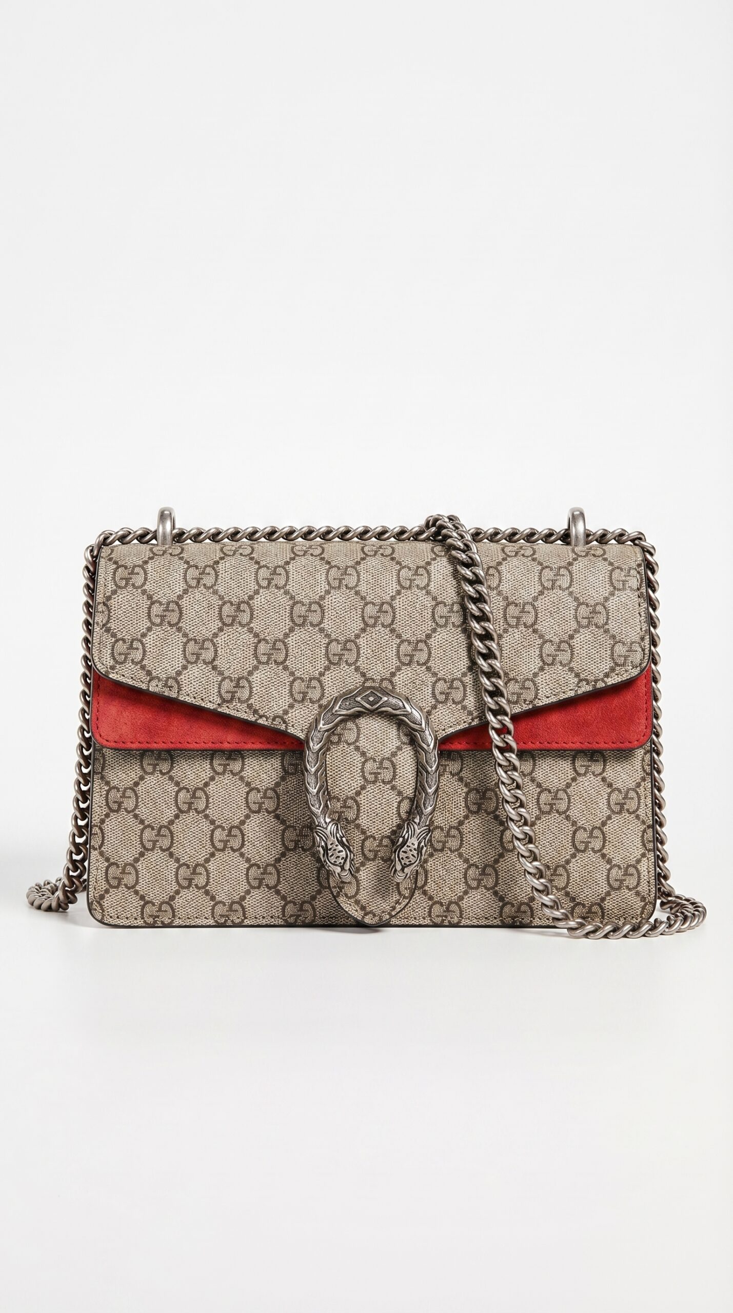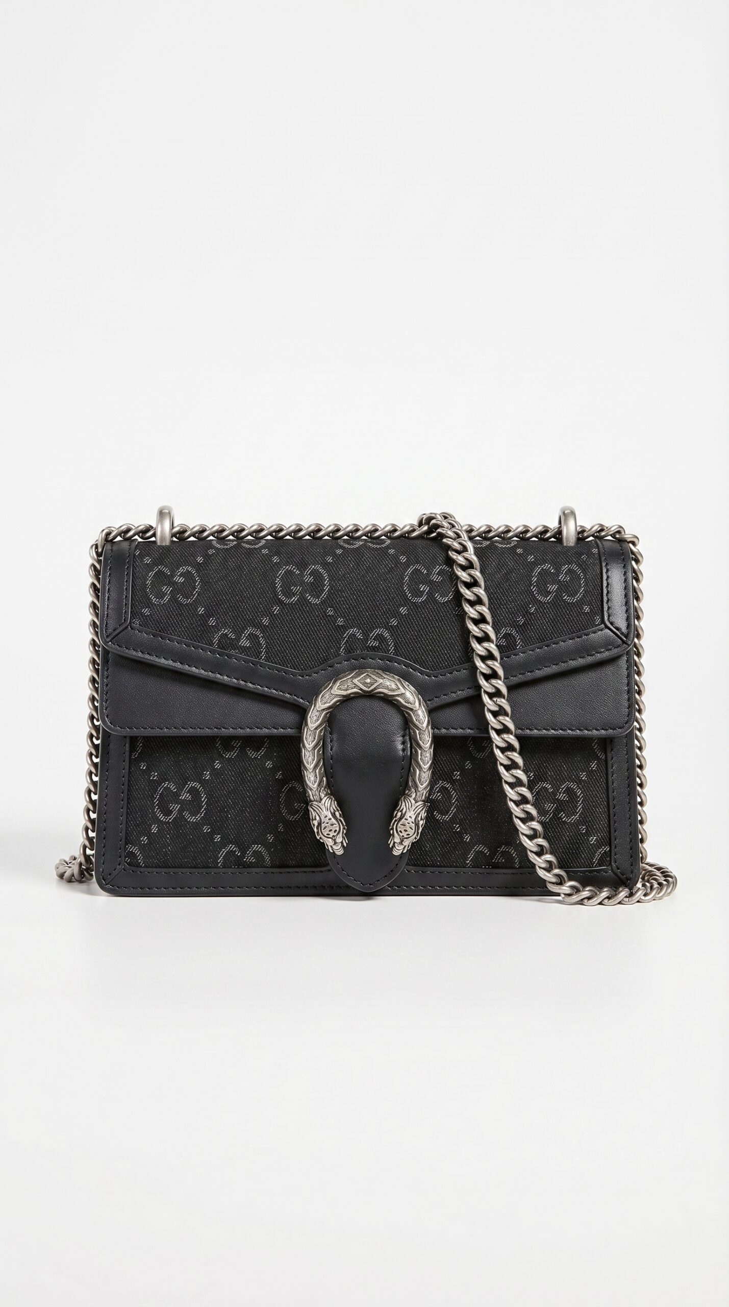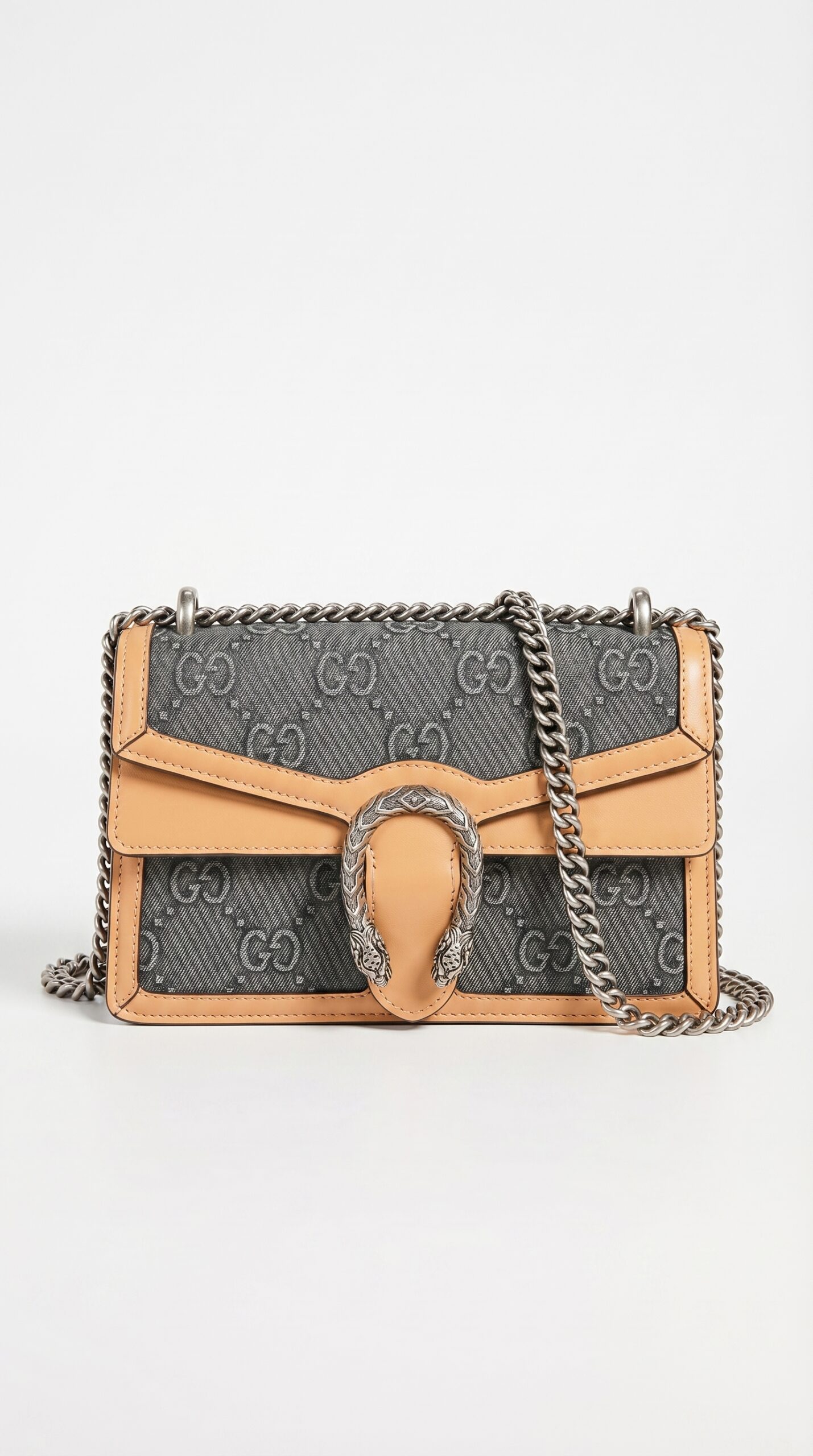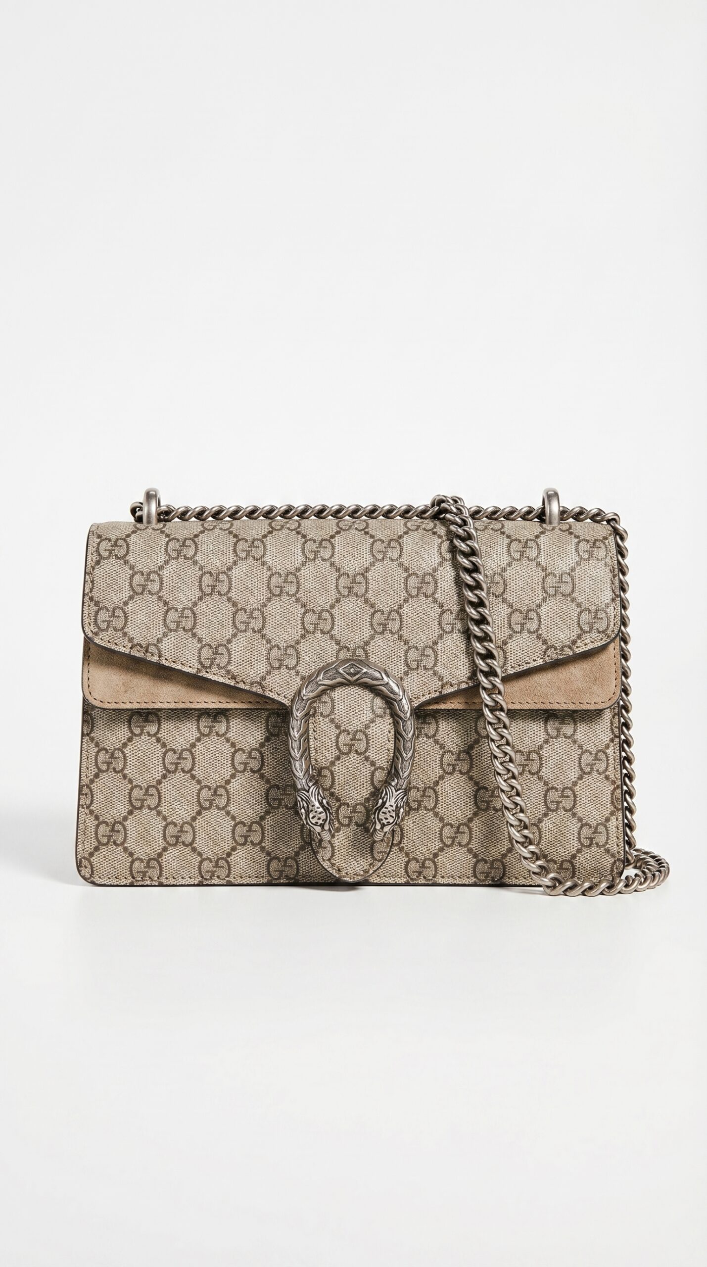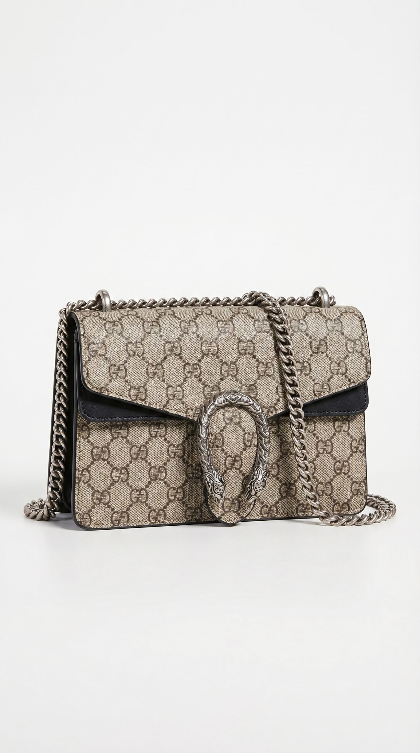 El bolso de hombro Gucci Dionysus es una pieza maestra que fusiona la herencia clásica con el diseño contemporáneo. Confeccionado en la emblemática lona GG Supreme en tonos beige y ébano, este modelo destaca por sus sofisticados paneles de ante negro que añaden profundidad y textura al diseño. Su elemento más distintivo es el cierre de herradura con cabezas de tigre en tono plata antigua, complementado por una correa de cadena deslizable que permite llevarlo tanto al hombro como de mano. Es el accesorio definitivo para quienes buscan un lujo estructurado y lleno de simbolismo.