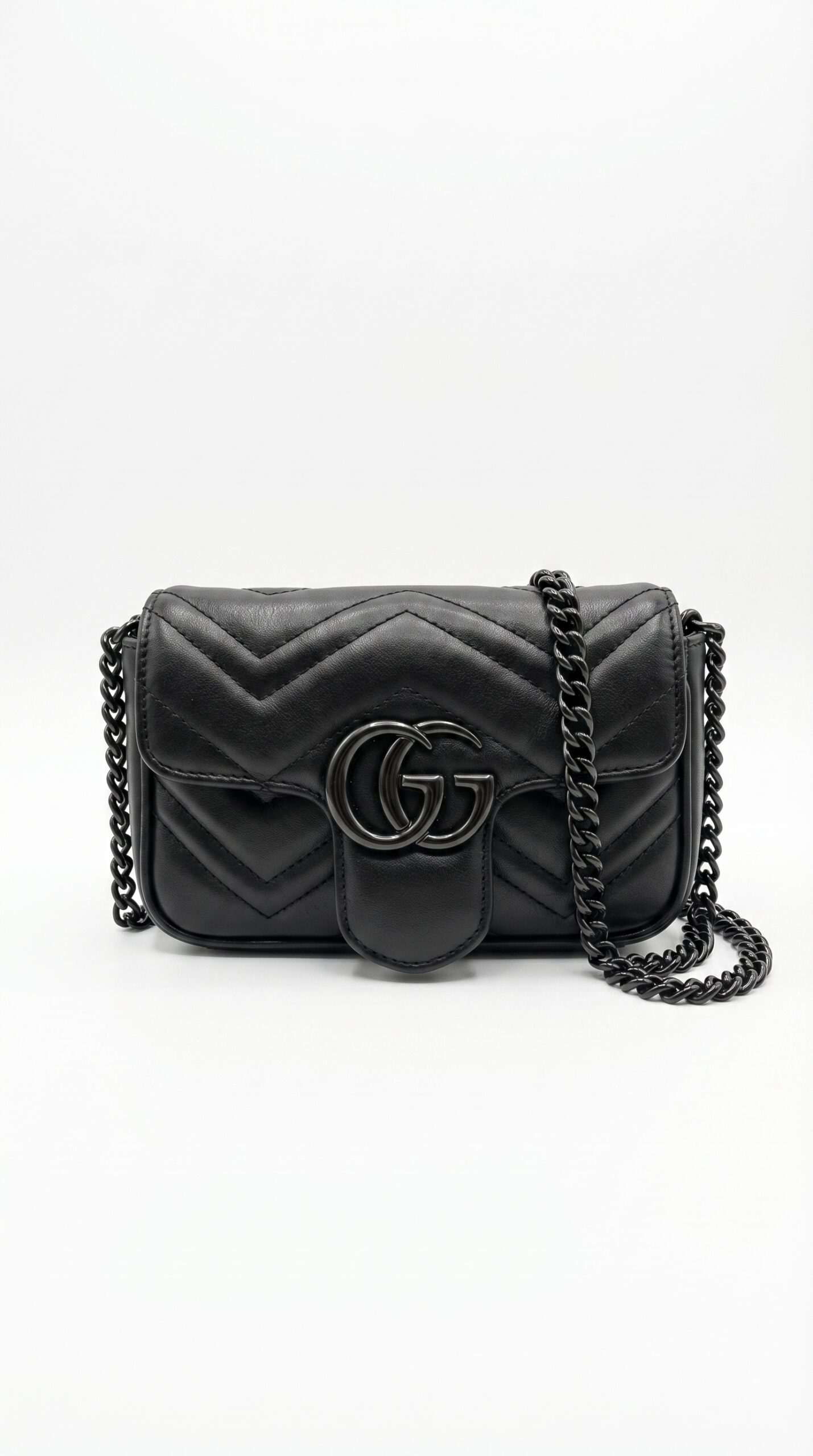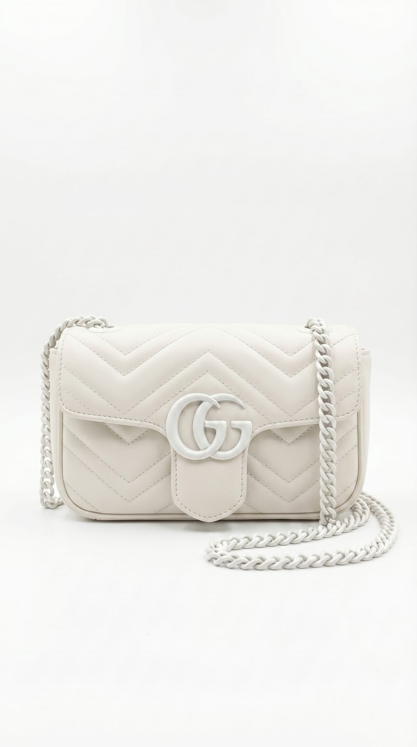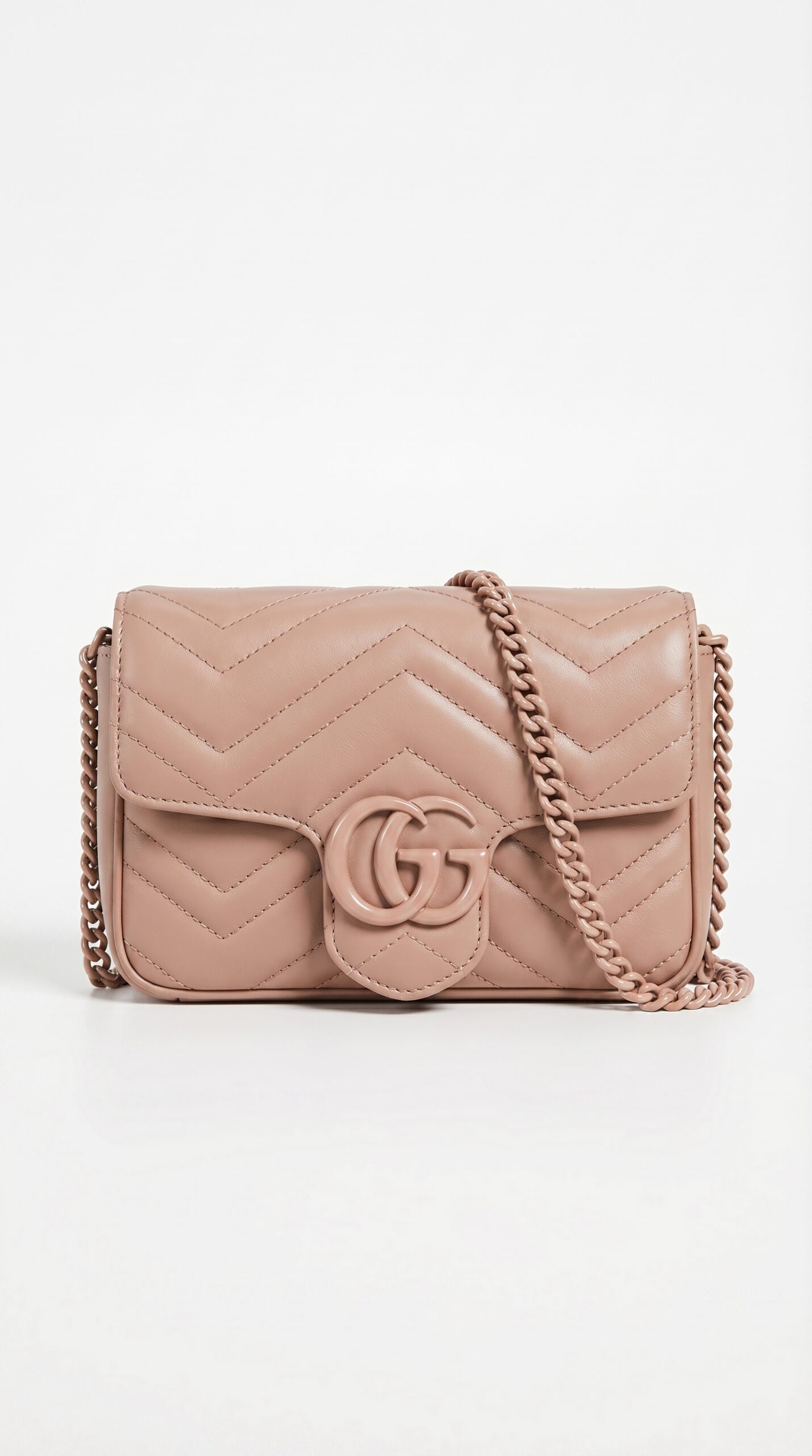 Eleve su estilo diario con la sofisticación minimalista del bolso GG Marmont Super Mini. Esta pieza maestra de la casa Gucci está confeccionada en piel napa matelassé con el distintivo motivo chevron y acabada con un delicado detalle de corazón en la parte posterior. Su diseño compacto, pero funcional, incluye una correa de cadena extraíble que permite múltiples formas de llevarlo: como bolso de hombro, bandolera o incluso como un elegante clutch de mano. Es el accesorio definitivo para quienes buscan lujo atemporal en un formato moderno y ligero.
